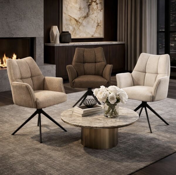 Heerlijk lang genieten ga je zeker doen op de armstoel Semmy, de stoel is 360 graden draaibaar en voorzien van een autoreturn.