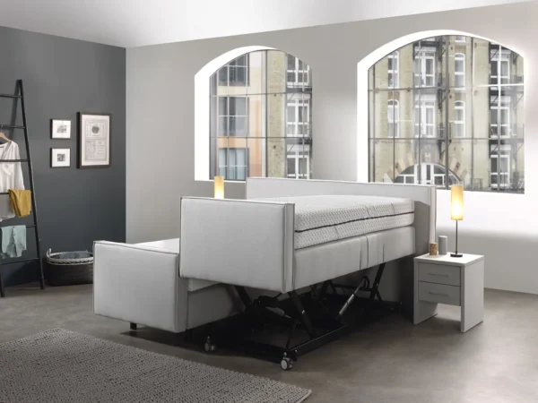 Deze boxspring kan maar liefst met 45cm in hoogte versteld worden. Tevens is deze boxspring te combineren met een vlakke of elektrisch verstelbaar welke niet in hoogte verstelbaar is. Zo kan men de nodige verzorging krijgen zonder tussenkomst van een somber verpleegbed. Dit bed is te combineren met al de hoofdborden uit de PUUR collectie en is standaard uitgevoerd met een wielset.