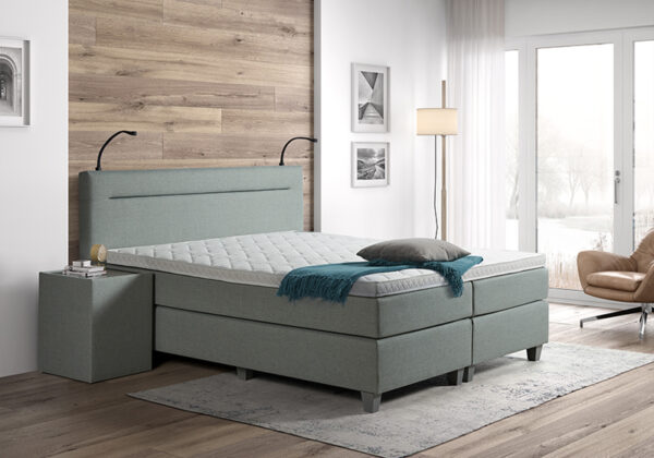 Ook bij de keuze voor model Oregon met zijn strakke hoofdbord met een horizontale naad doe je goede zaken, een prachtige boxspring met een tijdloos design.