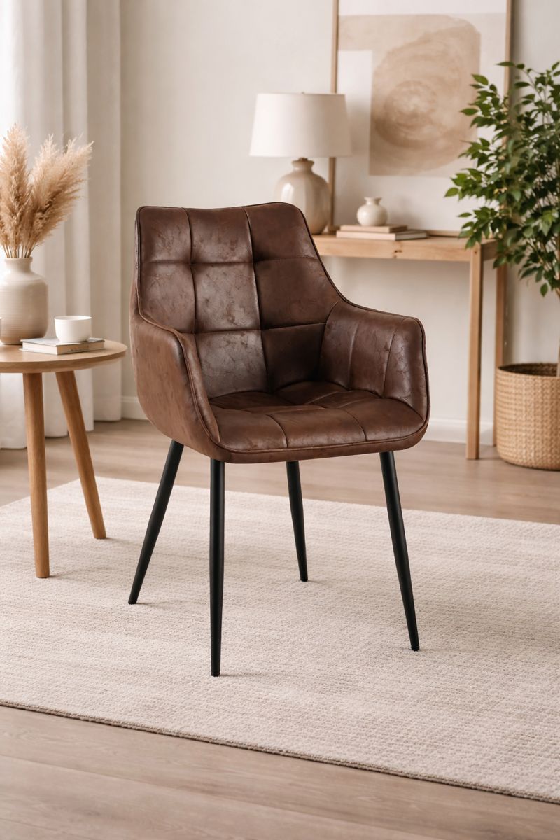 De armstoel Lucy komt op €129.- en de bijpassende eetkamerstoel is €89.-